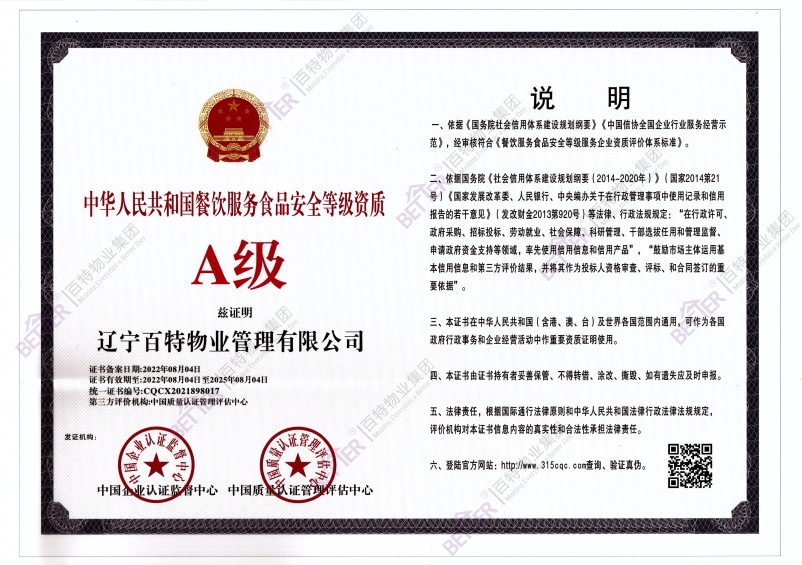 餐饮服务食安全等级资质A级