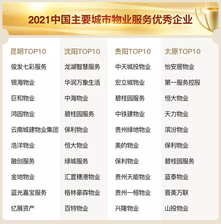 ▲ 2021 中国主要城市物业服务优秀企业TOP10